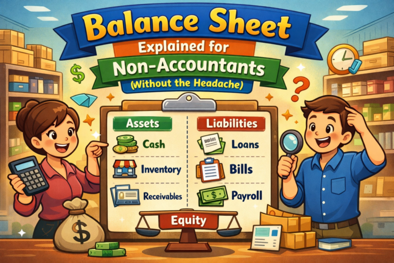 Blogs Balance Sheet Explained for Non-Accountants February 23, 2026February 23, 20260 When most business owners hear “Balance Sheet”, they mentally switch off. Too many terms. Too many numbers. Too confusing. Let’s…